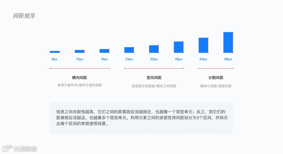 日常设计中使用频率最高的间距,一般出现在组件与组件之间。