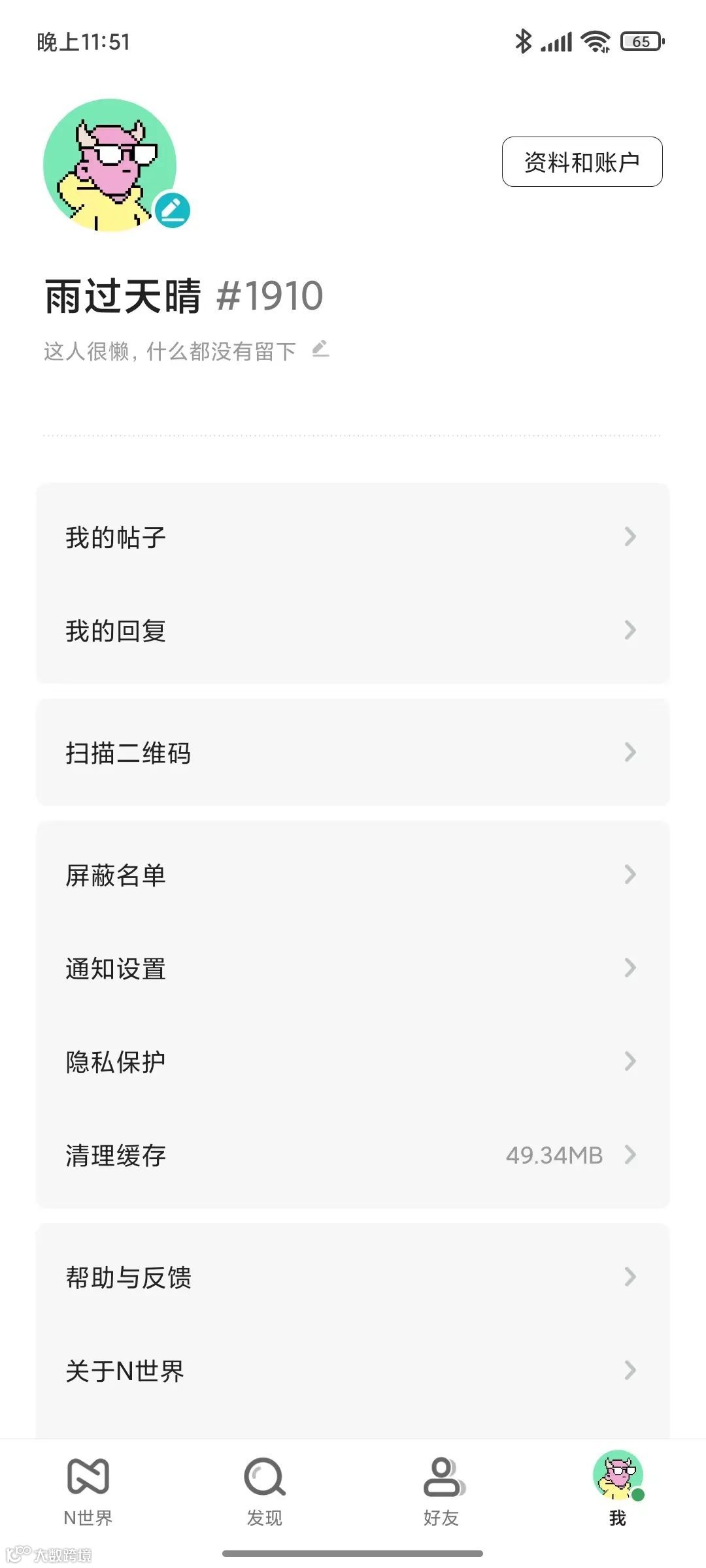 这里相当于通讯录,可以添加好友,也可以通过电话同步玩N世界的好友,我同步了一下,发现并没有好友玩这个,说明产品的知名度还有待提高。