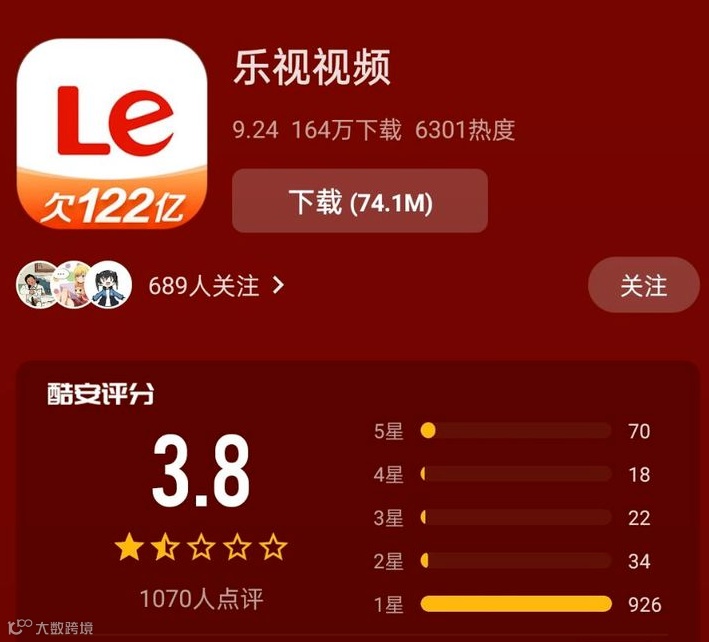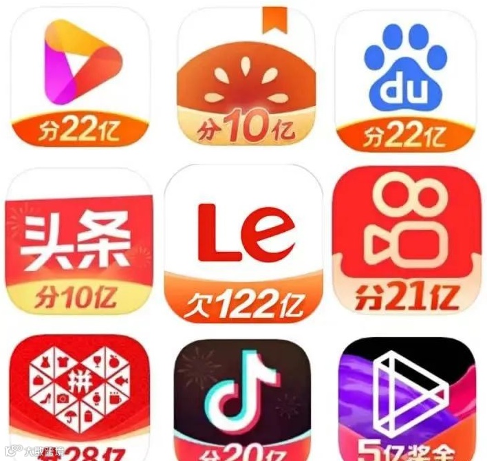 临近年关,各大头部APP都把自己的logo改成分XX亿,微博分 1 亿,支付宝分 5 亿,微视分 5 亿,京东分 10 亿,今日头条分 10 亿,抖音分 20 亿,快手分 21 亿,百度分 22 亿,拼多多分 28 亿,就当各位大佬打的难分难解的时候,杀出了一匹黑马,乐视APP把自己的图标改成了“欠122亿”,引发网友热议。
