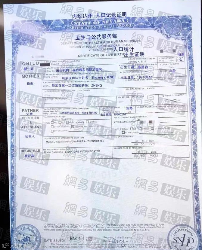 不过也没给网友过多的猜想机会,张恒的朋友就提供了两个小孩在美国的出生证明,证明上显示这个孩子是郑爽的,是其找人在美国代孕所生。