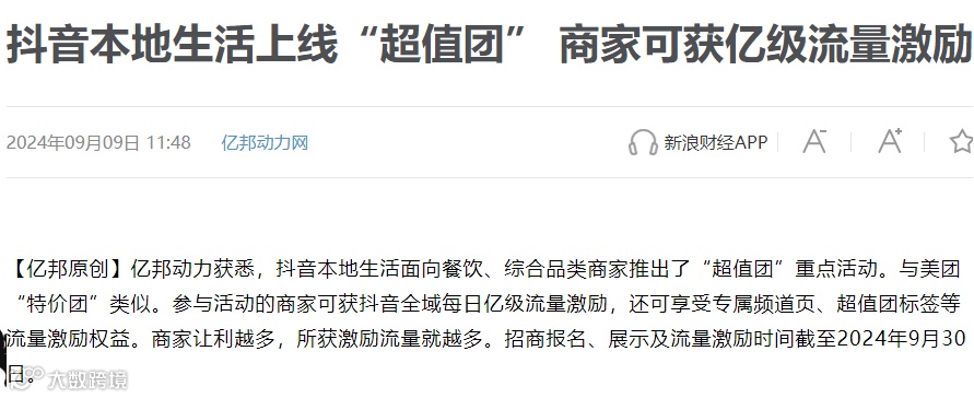 近日,抖音本地生活面向餐饮、综合品类商家推出了“超值团”重点