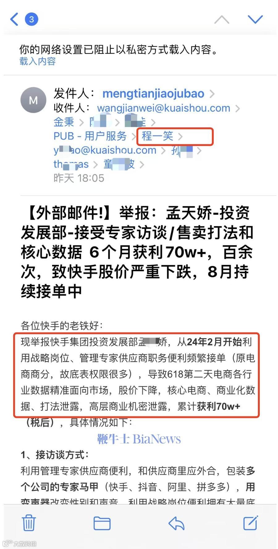 我们简单回顾一下快手员工泄露公司机密事件始末。8月30日,一份举报邮件在网上流传,指控快手内部员工泄露了公司的核心数据和规划打法,导致股价下降。该举报邮件发送给了快手的多位高管,包括联合创始人程一笑。