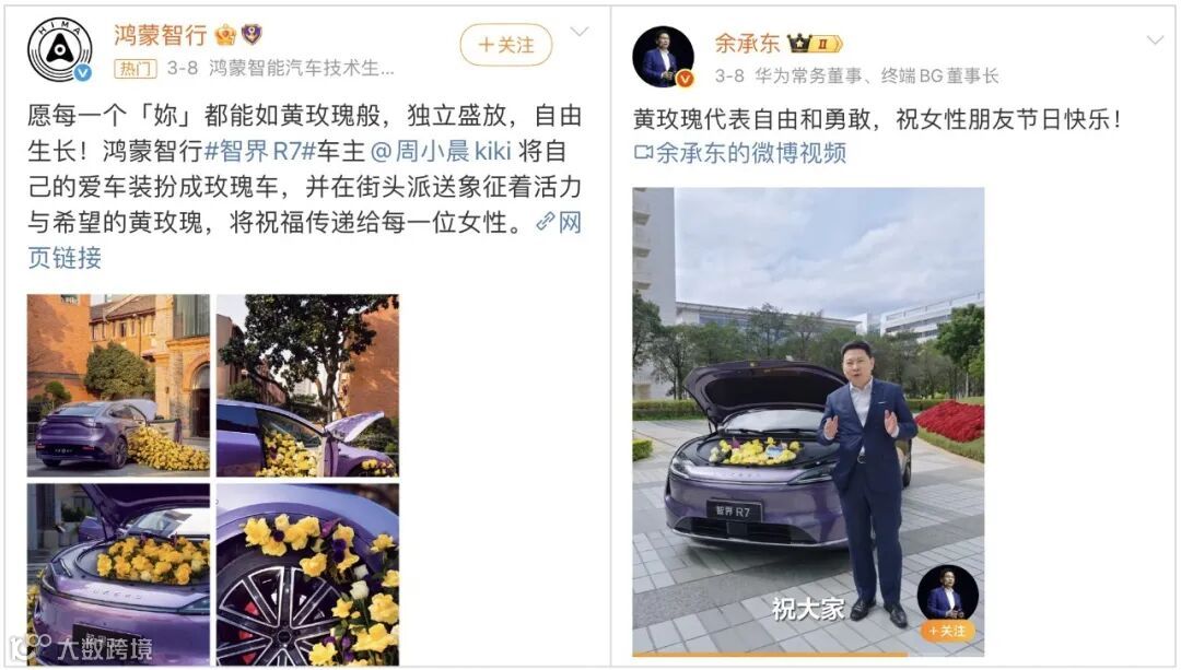 2025年3月,智界汽车官宣刘亦菲为品牌大使,通过“车主装扮玫瑰车—余承东发文—刘亦菲点赞”三步悬念式预热,在微博成功蓄势。官宣后登顶星品榜TOP3,联动汽车垂类KOL解读产品力,并在抖音打造直播热点,小红书发起#智界玫瑰7遇记#征集活动,深化生活场景联想。