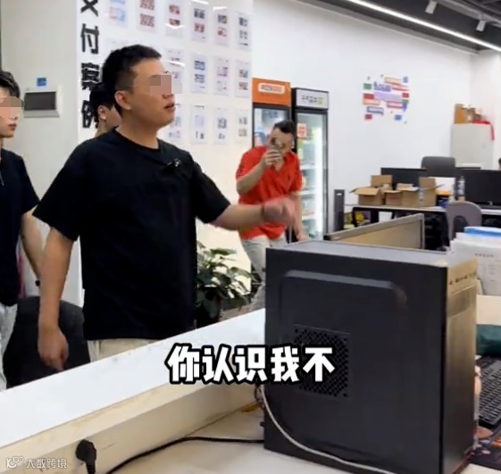 不过,“狂飙兄弟”看起来不像是来维权的,反倒像小混混来闹事的。因为“狂飙兄弟”一进门,就以一种近乎挑衅的方式质问老板:“认识我不?”