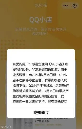 2022年8月份,腾讯还申请注册了多个“QQ小店”的商标,然而未等商标获批,QQ小店便在2023年的7月份宣布停运。