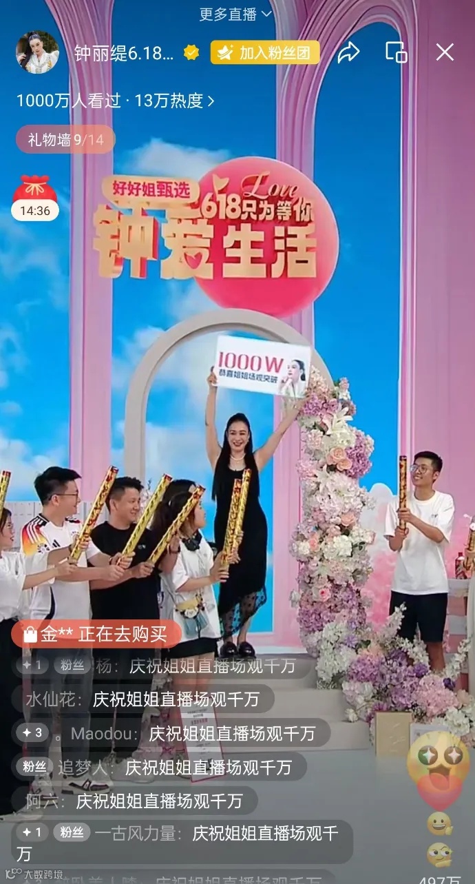 就在今年6月18日,明星钟丽缇在视频号直播带货,创下视频号首个场观突破一千万达人带货直播间记录。当天11:00至24:00,钟丽缇直播间总热力值4.2亿,成为当天视频号明星带货榜单No.1。