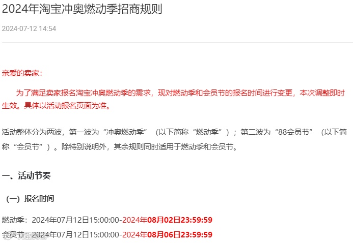 值得一提的是,淘宝天猫自己的“88会员节”活动,也将在8月7日-11日举办。换而言之,从7月27日奥运会开幕开始,一直到8月10日的七夕节,淘宝天猫要连着办三场大促活动。
