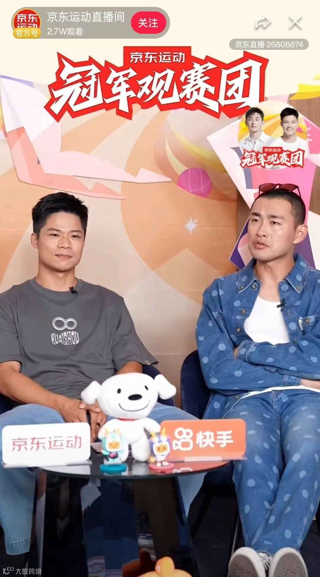至于传统电商平台,他们的运动员资源可能会少一些,但也没放过直播营销的好机会。比如京东和快手合作推出“冠军观赛团”,邀请苏炳添带观众一起看奥运,同步带货运动品类商品。