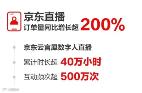 京东直播成为本次大促中的亮点,订单量同比增长超过200%,表明直播电商作为一种新兴运营方式,正在京东上迅速成长。