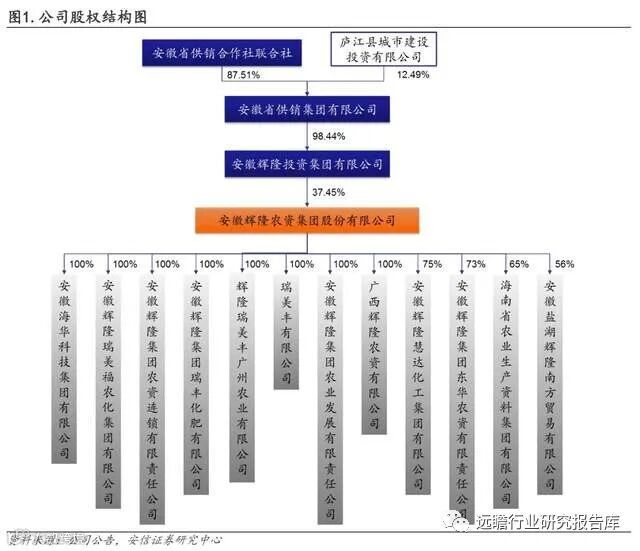 安徽辉隆农资集团股份有限公司前身为安徽辉隆农资集团有限公司,于2008年整体变更为股份有限公司,并于2011年在深交所上市。公司是安徽省供销合作社联合社控股企业,主营化肥、农药及精细化工产品的生产与分销,是国内农资流通行业首家上市公司,综合实力位居全国第三、省内第一,为安徽省农资供应龙头企业。