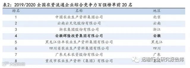 据中国农资流通协会数据,公司综合竞争力稳居全国前四。2021-2022年度,安徽辉隆投资集团位列中国农资流通企业百强第3位,较上年上升1位。