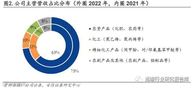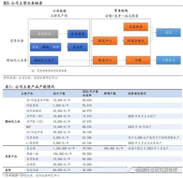 公司践行“工贸一体化”,自建六大肥药生产基地,自主品牌复合肥产能155万吨/年,磷酸一铵20万吨/年,农药制剂产能10500吨/年。年产2000吨氯虫苯甲酰胺原药及中间体项目有序推进。