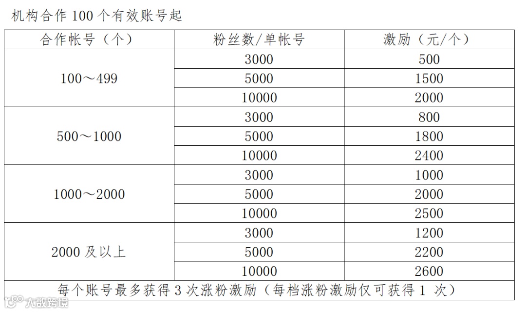补贴根据粉丝量分为三个等级:第一档3000粉丝,第二档5000粉丝,第三档10000粉丝,每达到一个档次则享有美团的一次现金奖励;个人、企业/机构旗下的达人,奖金可累计叠加3次,个人帐号最多可获得3500元的现金奖励,现金奖励,上不封顶。