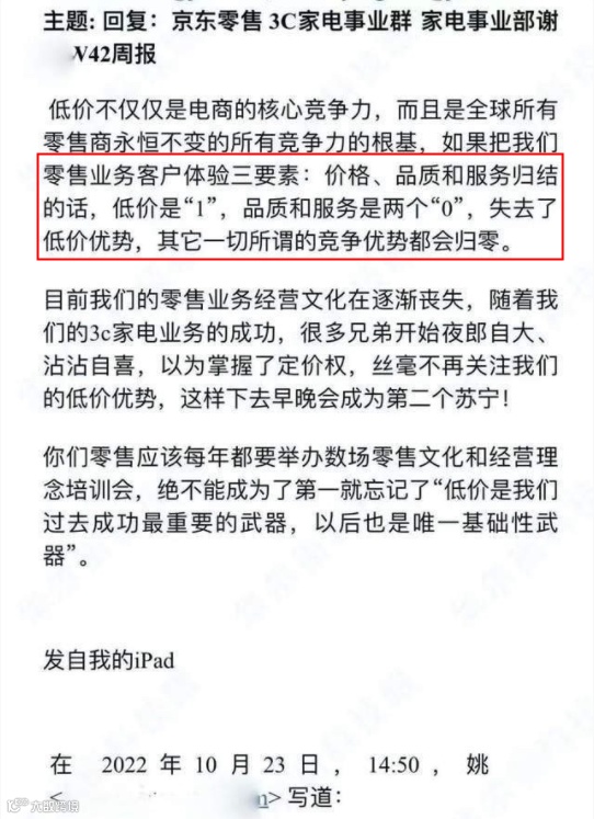 刘强东之所以强调,“低价是京东过去成功最重要的武器,以后也是唯一基础性武器”,是因为价格是一个零售企业的命脉。
