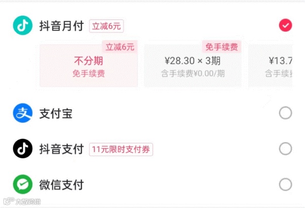 2021年1月,抖音商城正式上线抖音支付,因为使用抖音支付在抖音商城交易可享受一定程度的优惠,如今,抖音支付已成为抖音商城的主流支付方式,大名鼎鼎的支付宝和微信支付已经成为抖音支付的背景墙。