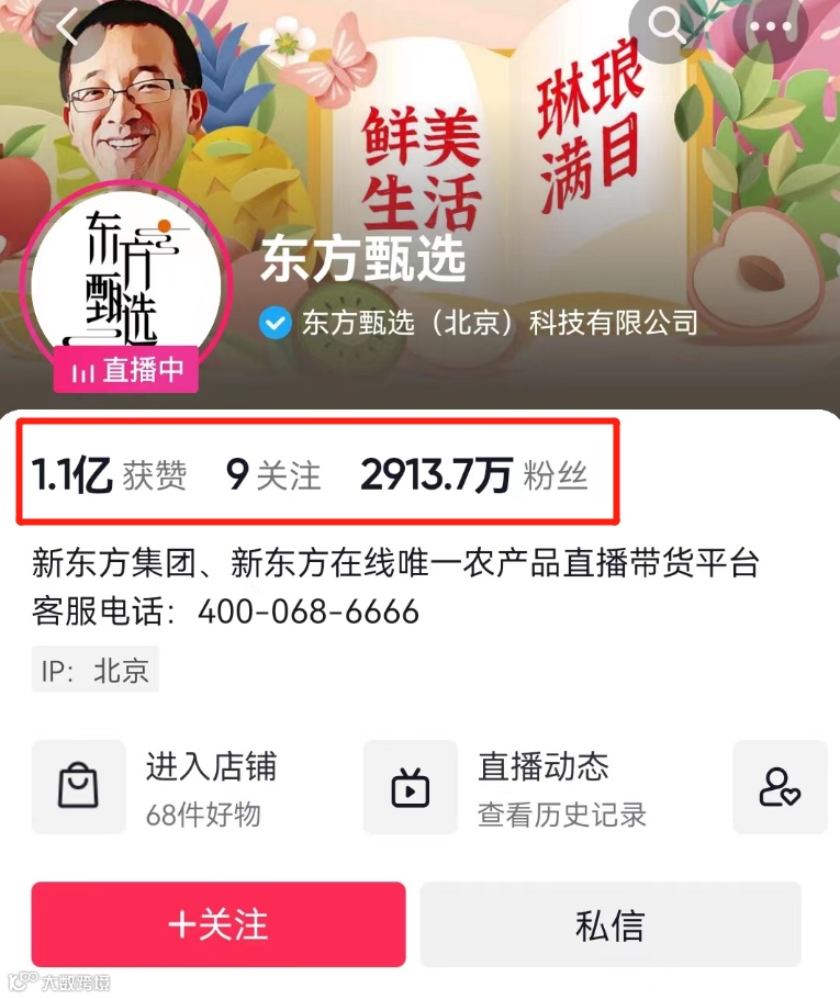 截止发号前,东方甄选的抖音账号粉丝已达到2913.7万。而值得注意的是,除“东方甄选”之外,“东方甄选美丽生活”“东方甄选之图书”“东方甄选将进酒”等账号也陆续亮相,尝试打造直播矩阵,这也进一步体现了新东方将全力押注直播电商的决心。