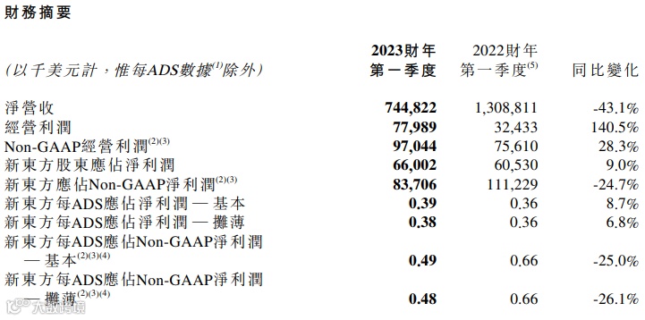 2022年10月26日,新东方交出了转型后的第一份成绩单:2023财年第一季度财报。