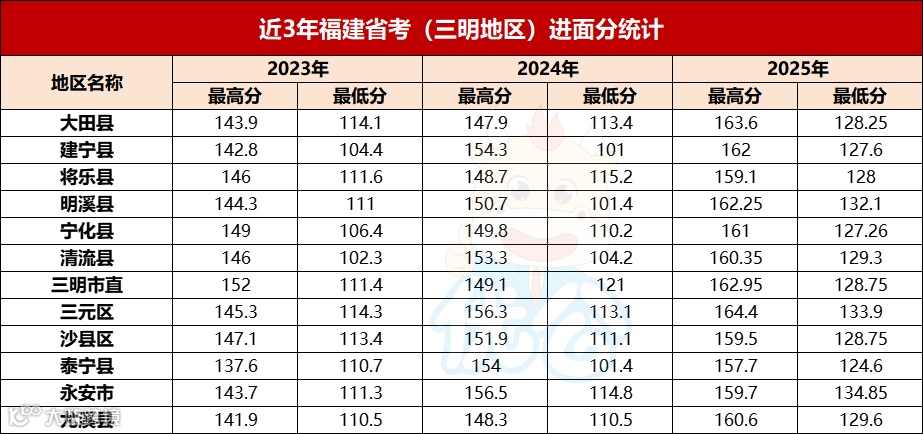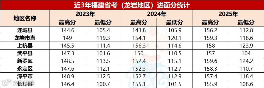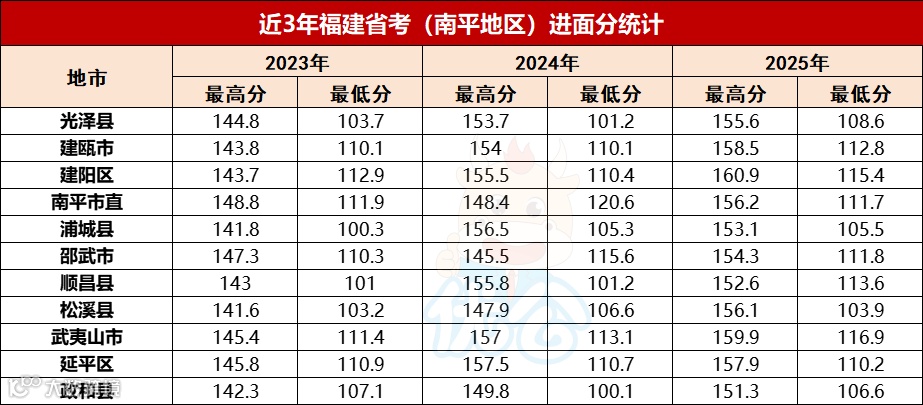 牛局长整理了近3年福建省考各地市进面份情况,供小伙伴们参考,建议收藏或转给需要的朋友哦~
