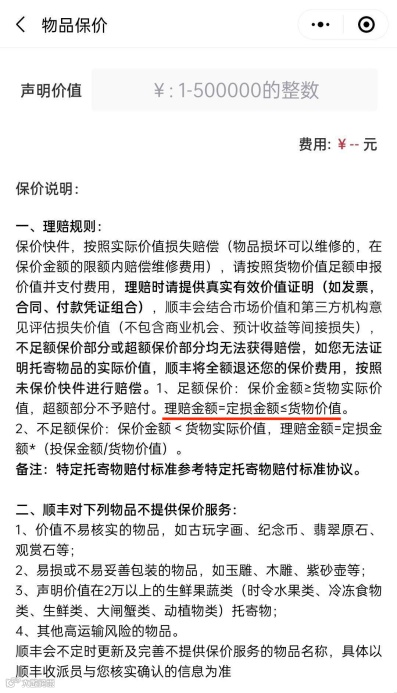 以顺丰的保价规则为例,包括古玩字画、纪念币等价格不易核实的物品;以及玉雕、木雕等易损或不易妥善包装的物品;还有声明价值在2万元以上的生鲜物品等,都不在其保价范围之内。