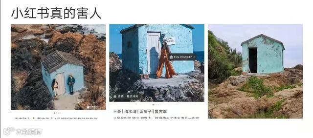 还有去年10月,有博主吐槽小红书上部分景点笔记与实际看到的差别较大。例如一处位于三亚清水湾的蓝色小屋,被笔记列为“超好拍秘境”,但有游客实际前往后,发现只是一栋破旧的小木屋。