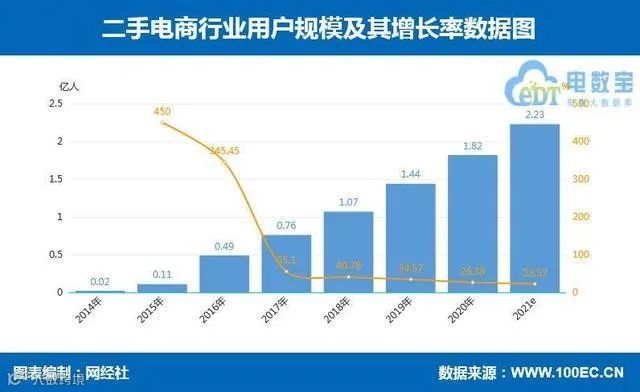 中国的二手交易规模在2015年还不足3000亿元,到2020年已经突破成了万亿市场。有关机构预测,到2025年,中国的二手交易规模将达到3万亿。