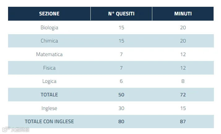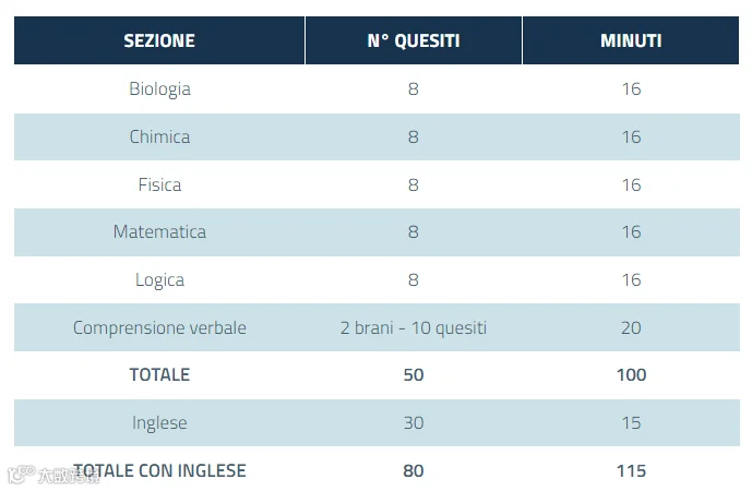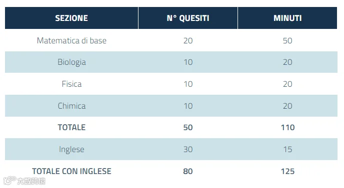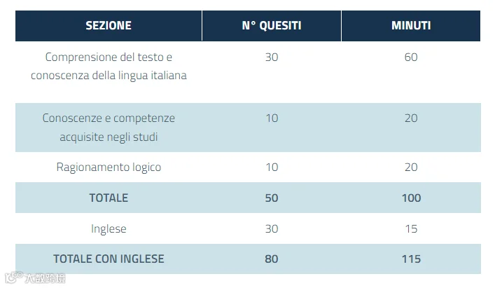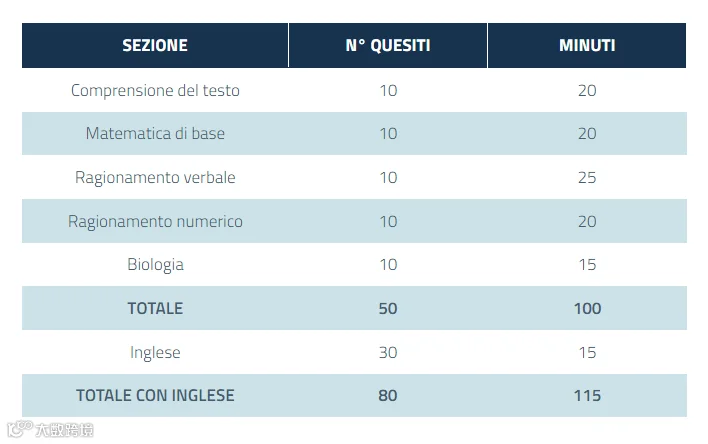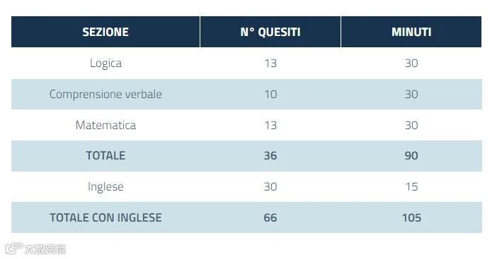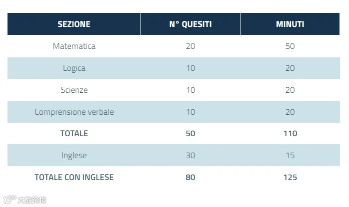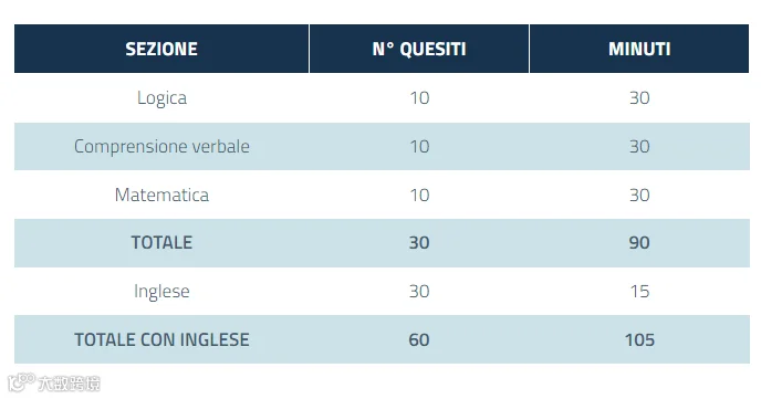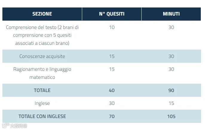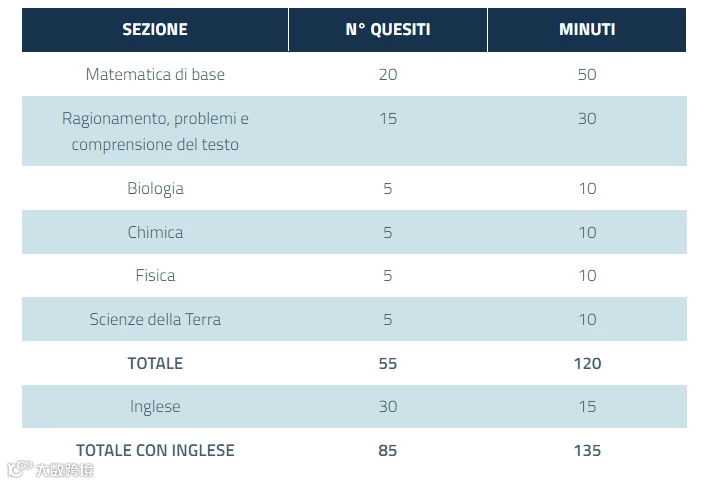 TOLC由多项选择题组成,按不同科目分为若干个部分,每个部分都有规定的作答时间,每种类型都对应特定的领域或学科。