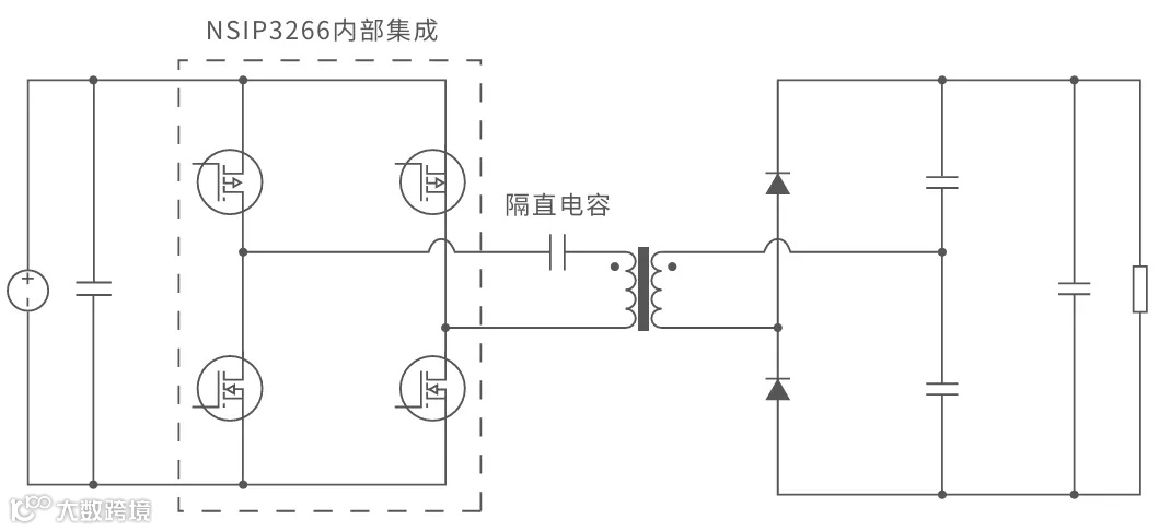 NSIP3266采用全桥拓扑架构,与平面变压器结合构成了一个在电气性能、热管理和量产鲁棒性上均表现优异的系统级解决方案。