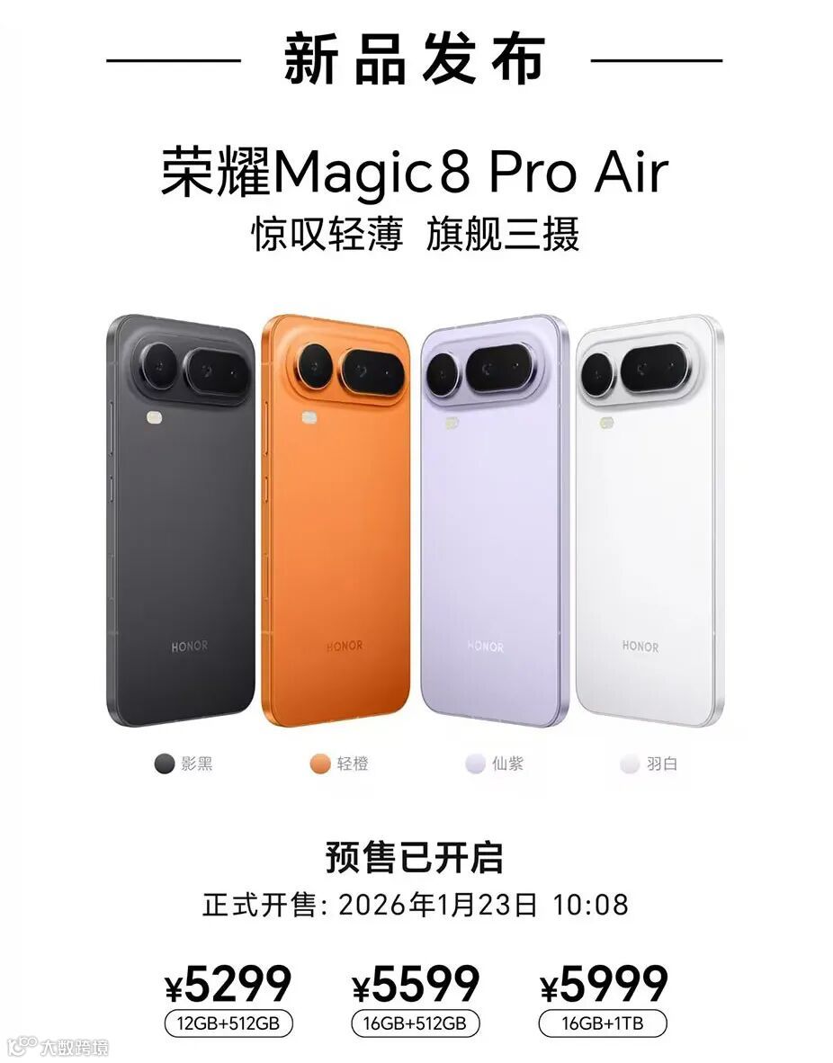 荣耀Magic8 Pro Air正式发布,国补优惠价4799元起!