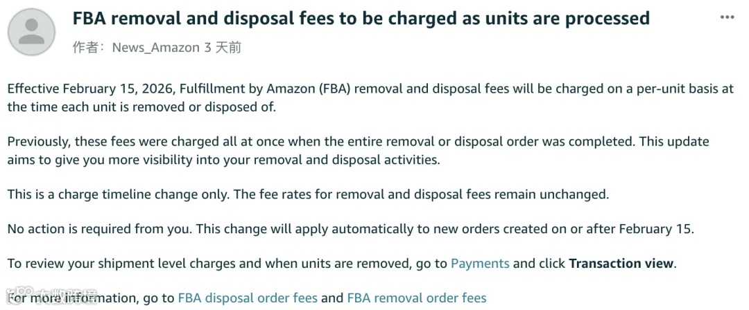 尽管账单条目将显著增加,但对于库存周转快或处理量大的卖家而言,可更直观掌握库存清理的实时成本。