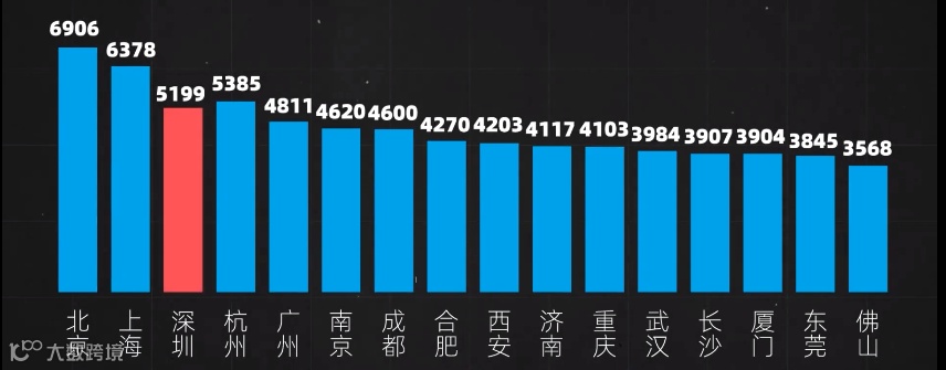 作为对比,目前深圳300多家上市公司的总市值是11万亿人民币;A股的总市值是10万亿美元。
