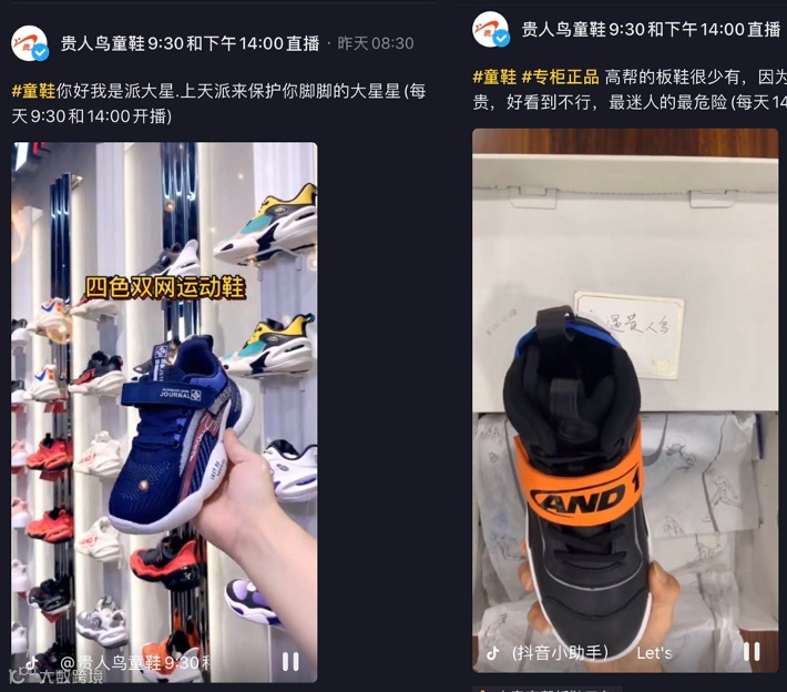 但从贵人鸟“杀”入抖音开始直播带货以来,满打满算也就不过两个月左右的时间,就已经拿到了单场销量60w的可喜成绩。经过一段时间以来对抖音直播带货的探索,贵人鸟决意将这个模式内化成日常战略,培训各个门店员工的直播能力,粗略估计未来将开设超过100个带货账号。