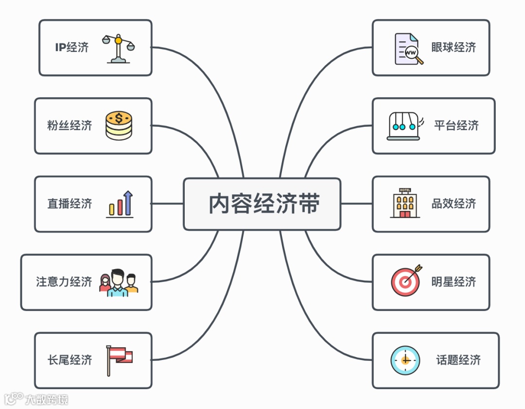 在一连串的场景中,产生一连串相应的语境。因为“内容经济带”,是对人、物、资源、平台等种种要素的集中串联,囊括了粉丝经济、眼球经济、直播经济、注意力经济、长尾经济、品效经济、平台经济、明星经济、话题经济、IP经济等绝大多数能推动品牌发展的“传动带”。