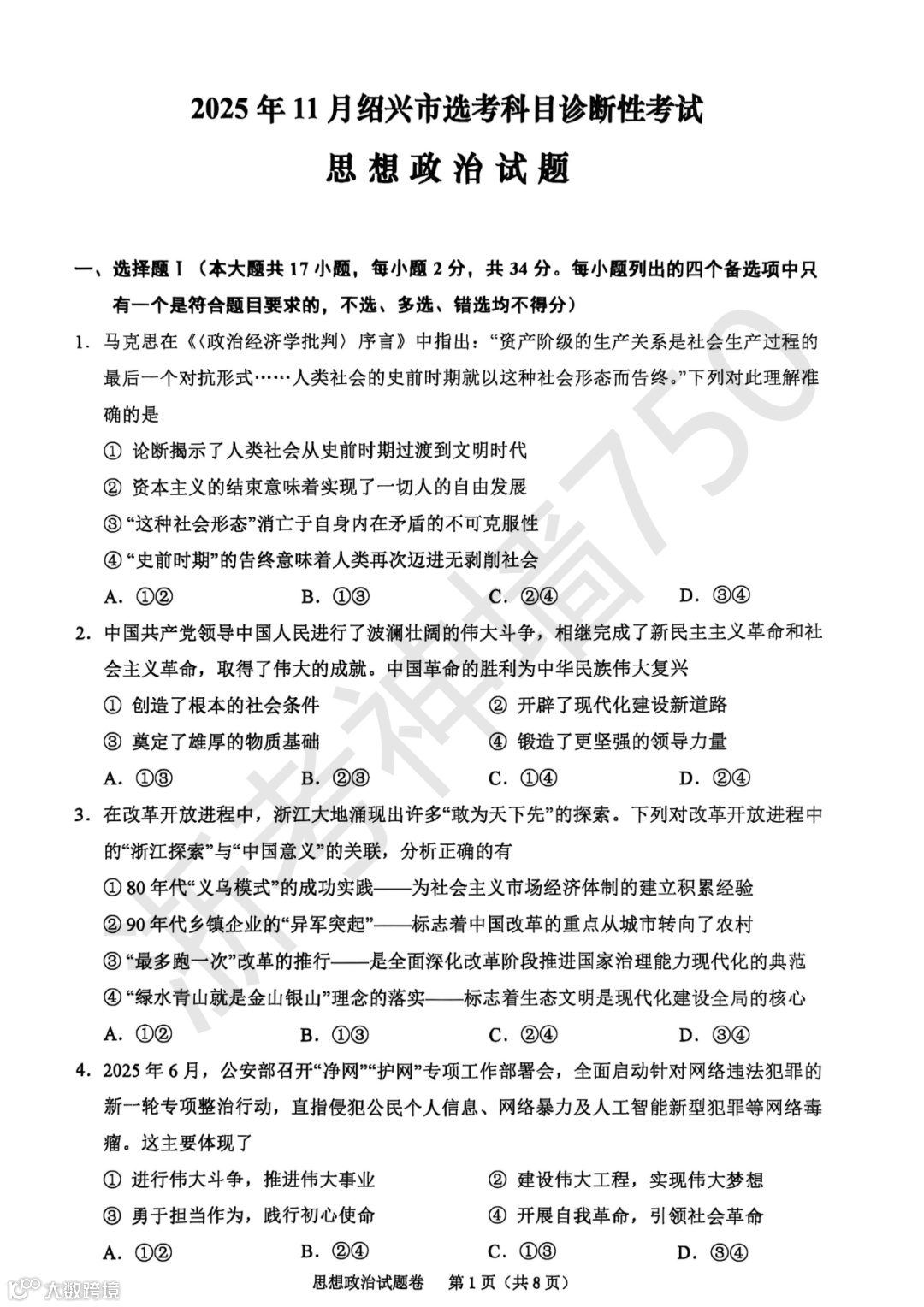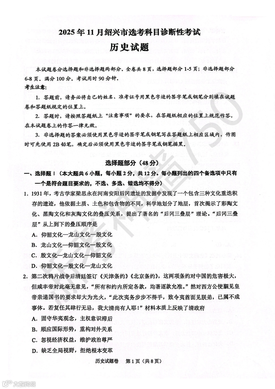 试题下载方式二:浙考神墙750小鹅通,点击高中试题,找到对应年级