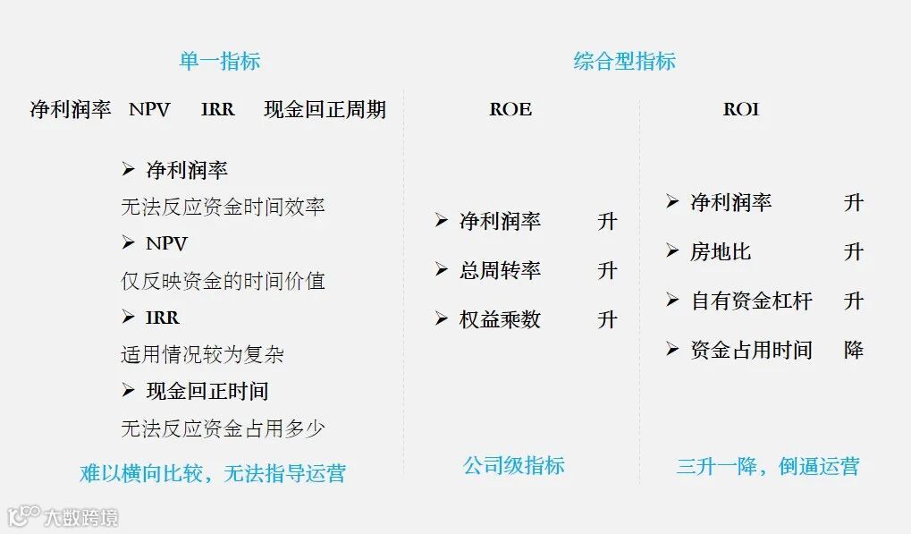 - ROI:聚焦项目本身,反映全投资视角下的真实盈利能力,管理颗粒度更细。