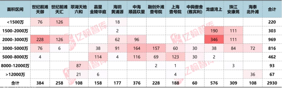 相比之下,250㎡以下的“控总价”产品多出于规避高容积率或遮挡影响,试图以价格差异实现错位竞争。然而,客户结构复杂化易导致“高不成低不就”的市场认知,在2000–3000万总价区间面临激烈竞争,难以凸显产品优势。