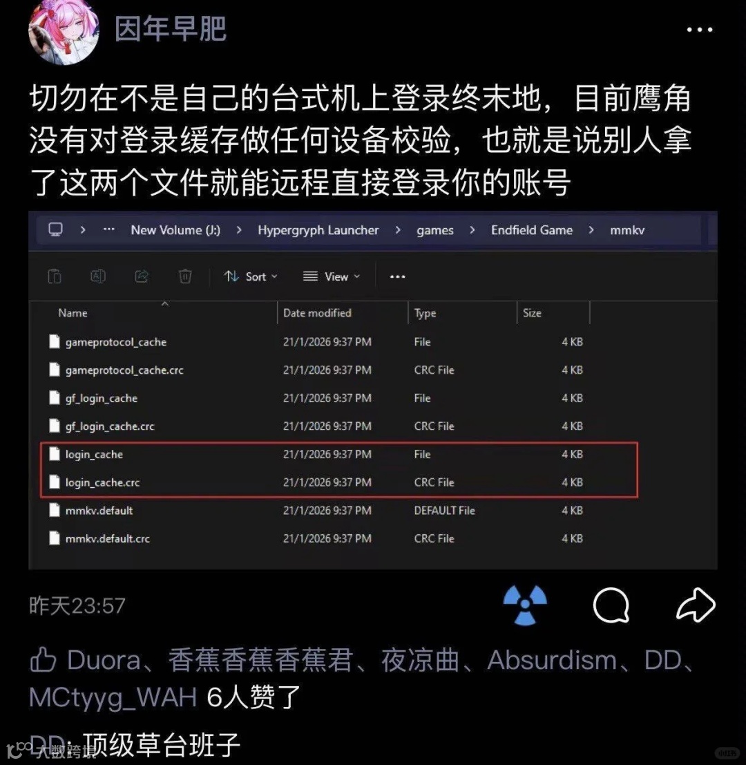 《明日方舟:终末地》所带来的安全风险不止于此。这款游戏利用两个文件远程盗登个人账号、多次扣费等bug,也层出不穷。不过据了解,这个事故整体只持续了一小时。