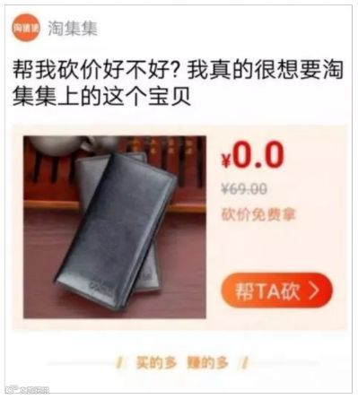 再比如说不要钱的东西,只要你将链接分享到微信群,拉来足够的人帮你砍价,就能零元包邮。当然商家不会做公益,整个过程产生的成本都由淘集集补贴。都说拼多多拉人砍价是好手,没想到淘集集才是公鸡中的战斗机。