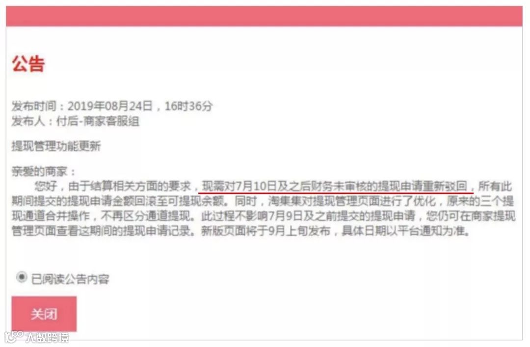 原来从今年7月份开始,他们在淘集集上的货款就无法提现了。