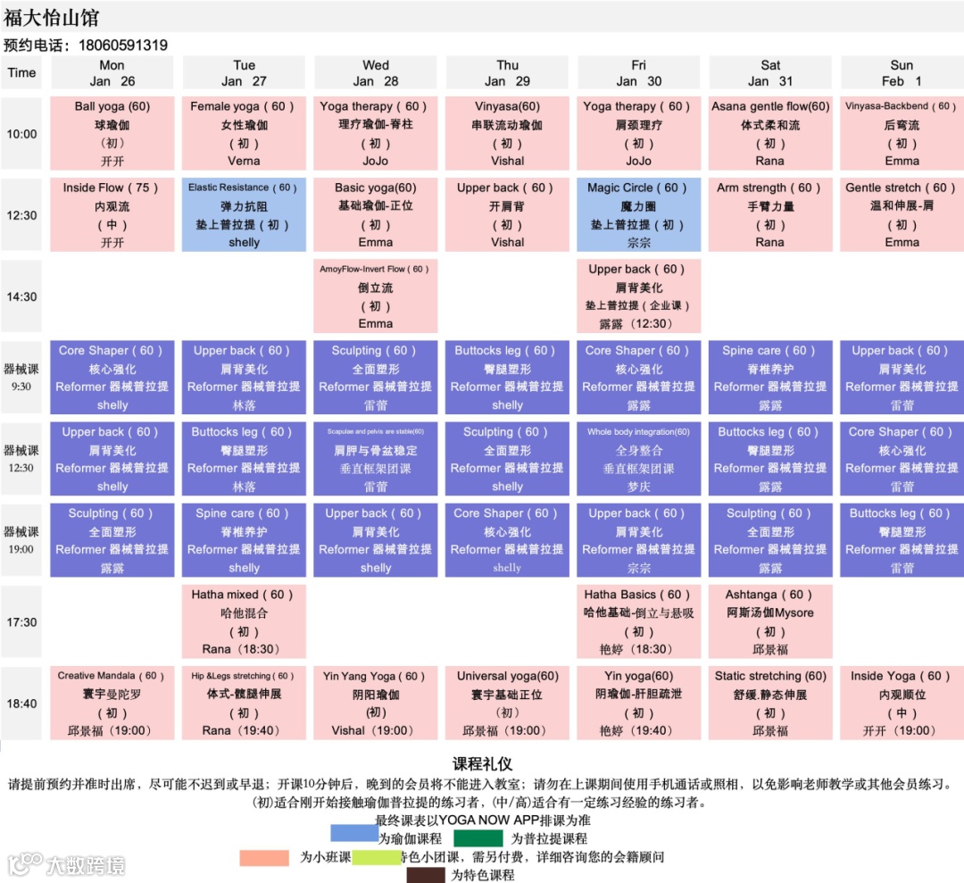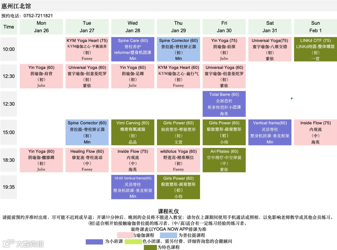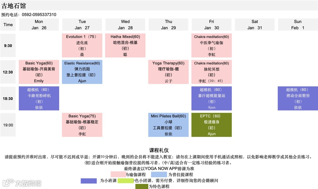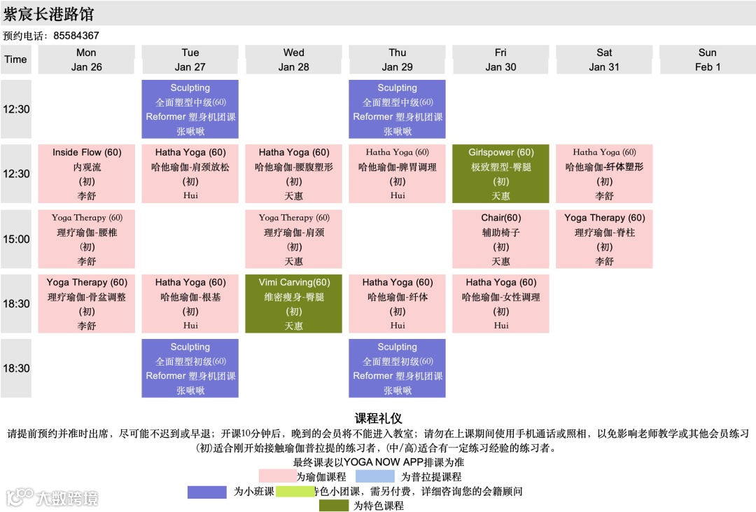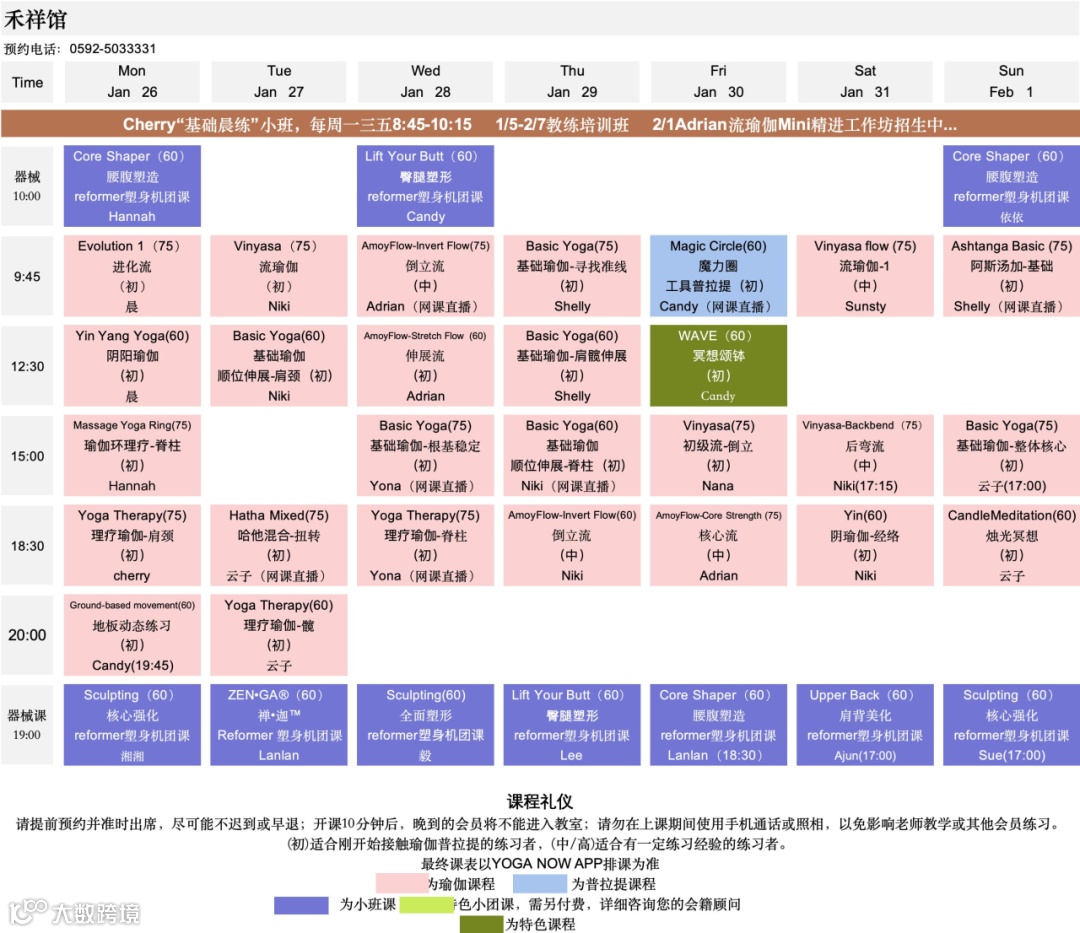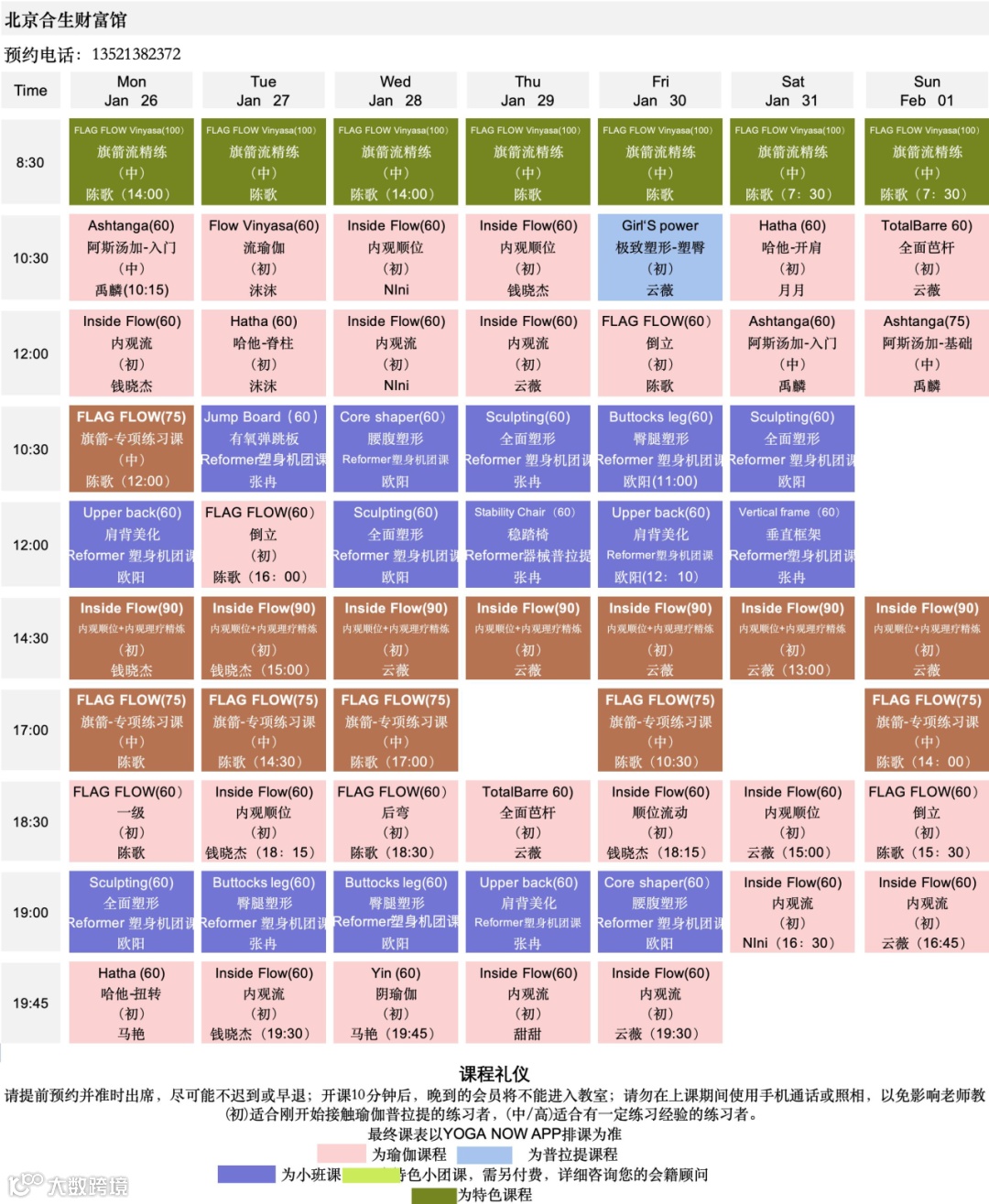 ❸ 为不错过任课前热身、调息等重要环节,请准时或提前5分钟进入教室。迟到者将无法进入内上课。