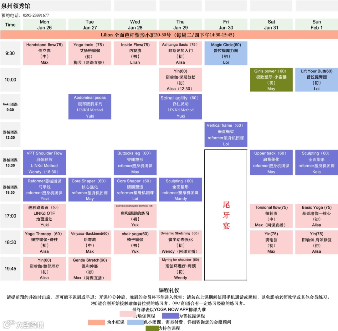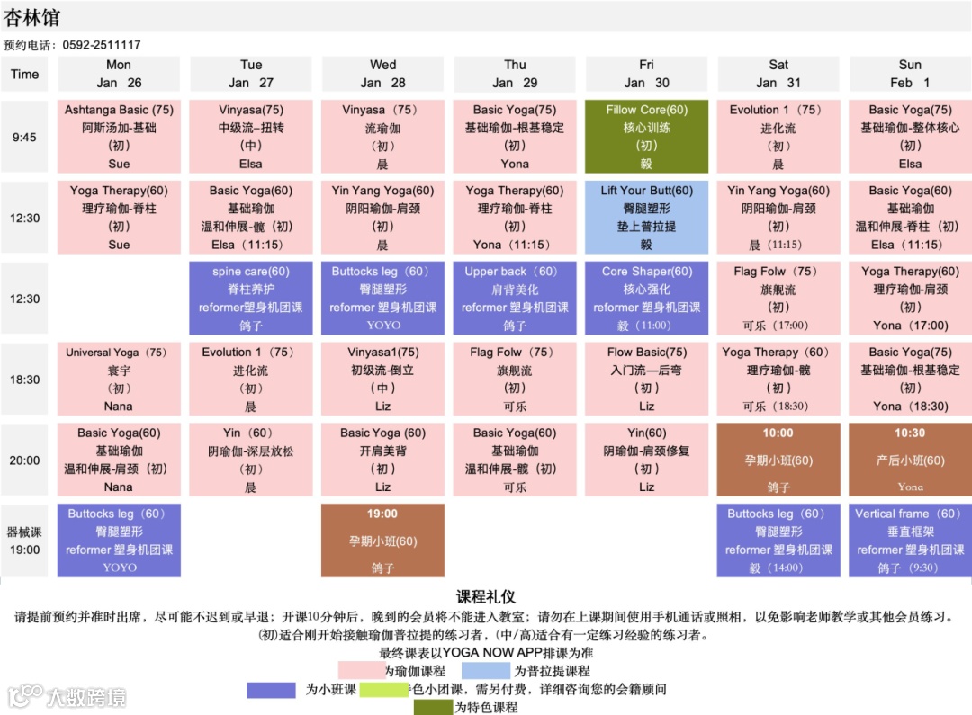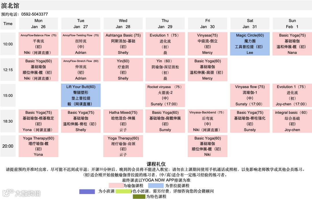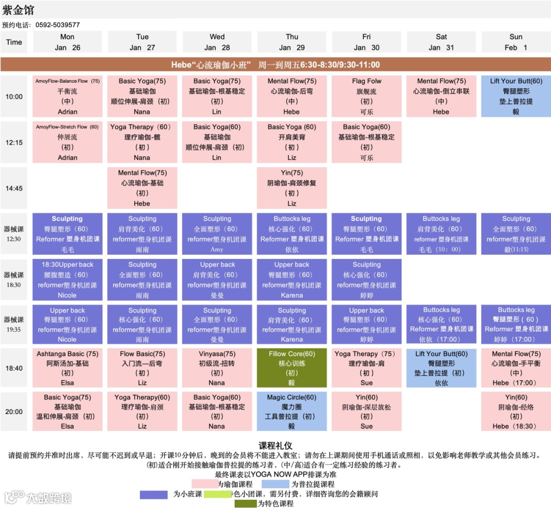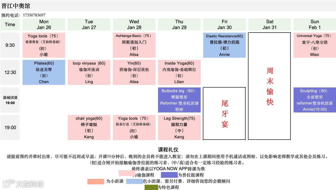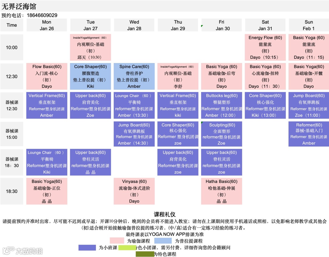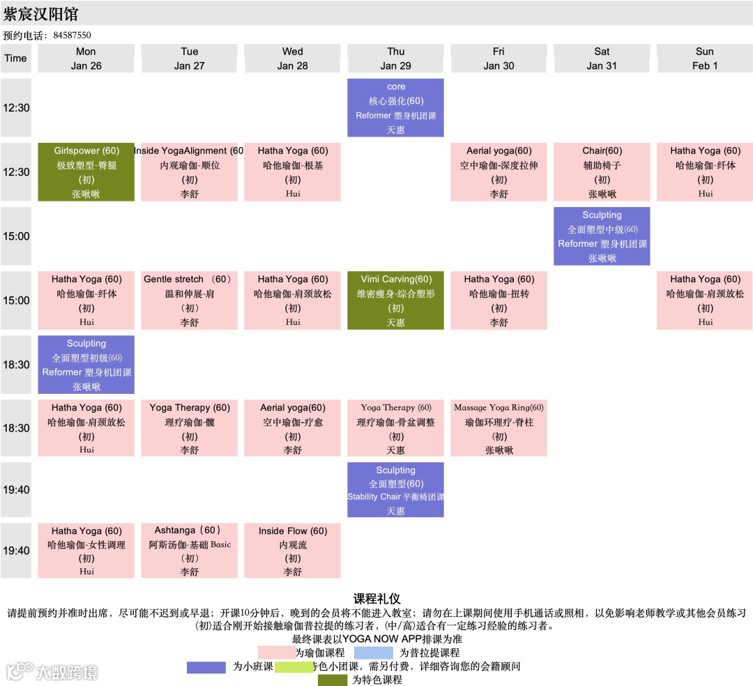 ❸ 为不错过任课前热身、调息等重要环节,请准时或提前5分钟进入教室。迟到者将无法进入内上课。