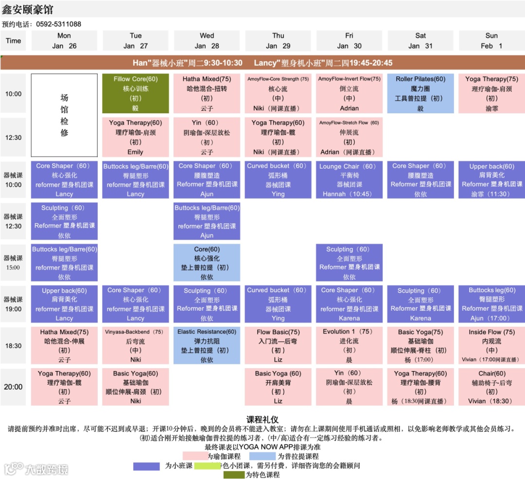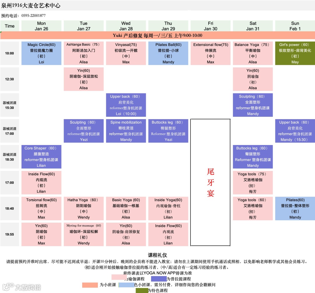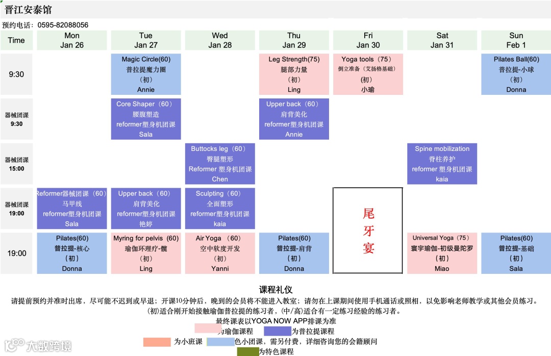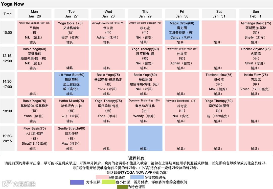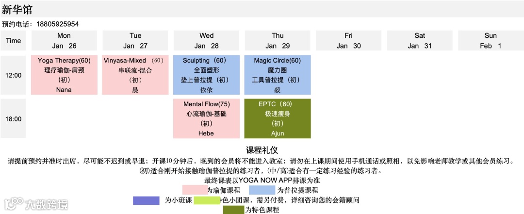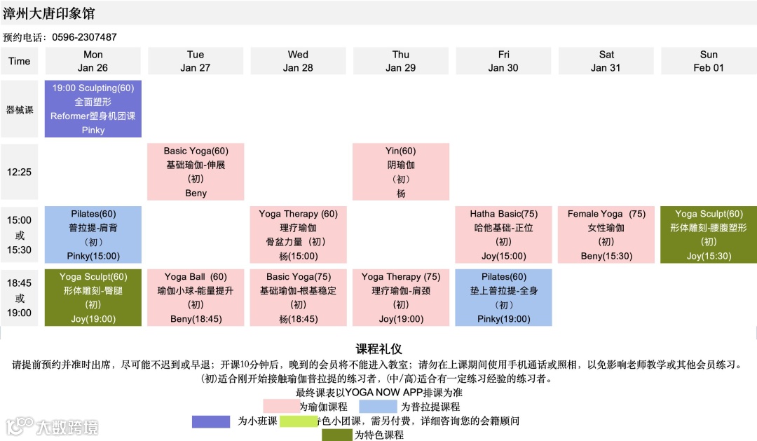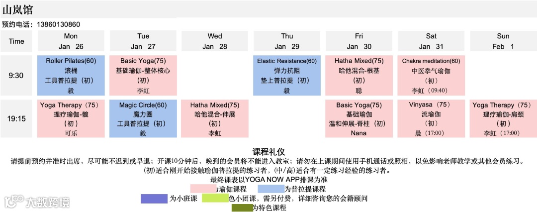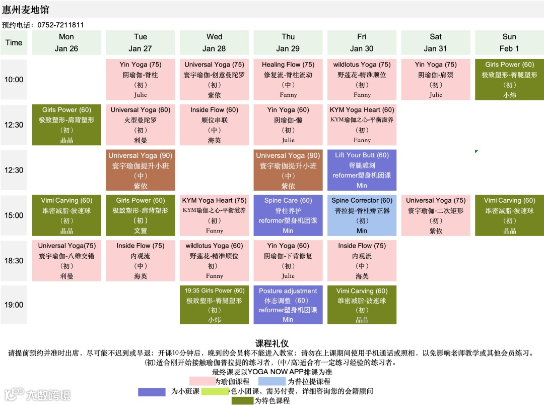 ❸ 为不错过任课前热身、调息等重要环节,请准时或提前5分钟进入教室。迟到者将无法进入内上课。