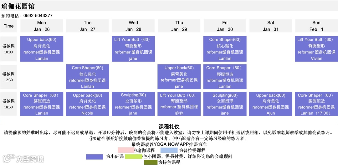 ❷ 如课程开始您既未取消预约又未出席课程,我们将视为你已消费正常扣除当堂课时费用,敬请谅解!