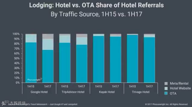 消费者并未如预期转向酒店官网。相反,2016至2017年,OTA在线预订量加速增长,已超过所有酒店官网及App总和。