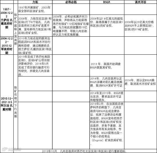 ▲国际矿业巨头围绕西芒杜铁矿矿业权争夺历程