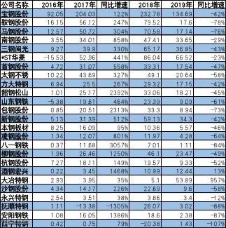 ▲主要上市钢企净利润变化,数据来源:东方财富