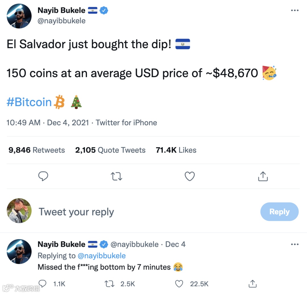 当然,这个数据是记者和专家们仅通过纳伊布的推特时间线所推算出来的——我们无从知道这个国家的什么部门在负责比特币的交易,也不知道总统所说的交易是真是假。