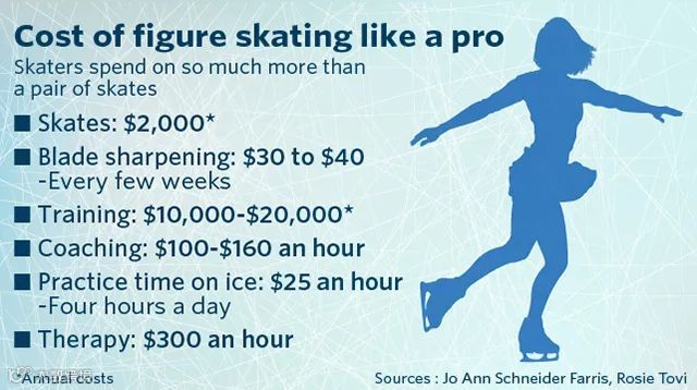 冰雪项目在此时进入了妈妈们的眼帘。首先冰雪运动高昂的费用,就可以帮忙筛掉大量的竞争者。拿花滑来举例,一个专业运动员每年各类开支,随便就能突破5万美刀,而美国家庭收入中位数,才只有6万美元左右。