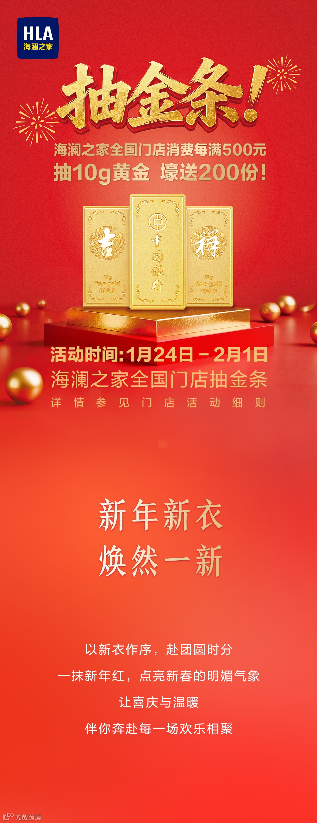 导读:开年见“金”喜!海澜之家全国门店消费每满500元抽10g黄金!