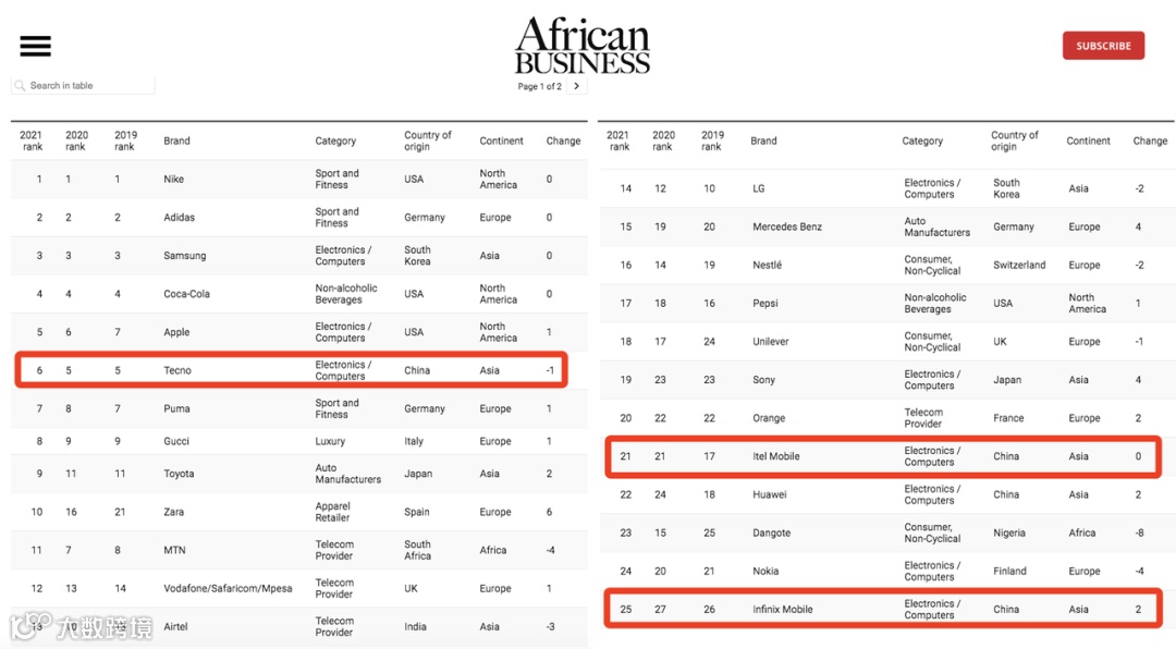 African Business“最受非洲消费者喜爱的品牌”百强榜