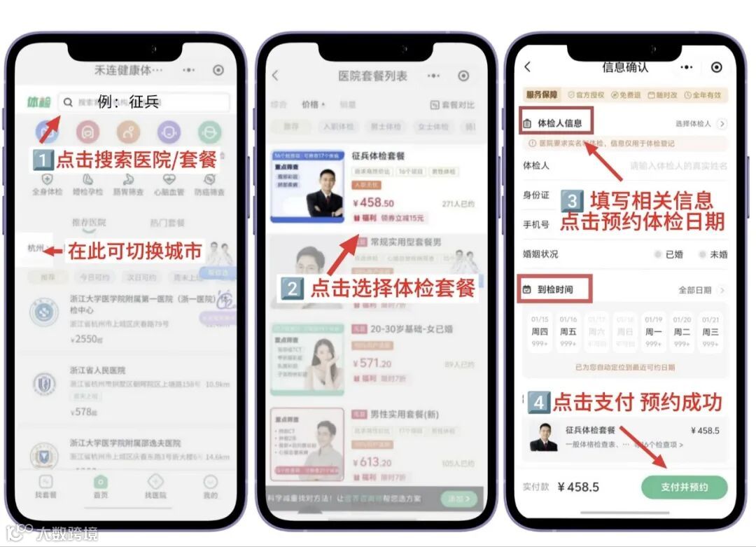 除了征兵体检,禾连健康体检预约平台还为您提供全国多种类型的体检服务一一无论是入职体检、公务员体检、教资体检,还是全身健康体检、深度体检、青年体检、中老年体检、父母体检,亦或是女性妇科套餐、早癌筛查、专项体检、胃肠镜体检、高端体检等,都能在平台上轻松预约,点击下方链接,一键直达预约页面,为健康提前做好准备,让关爱不留空白。